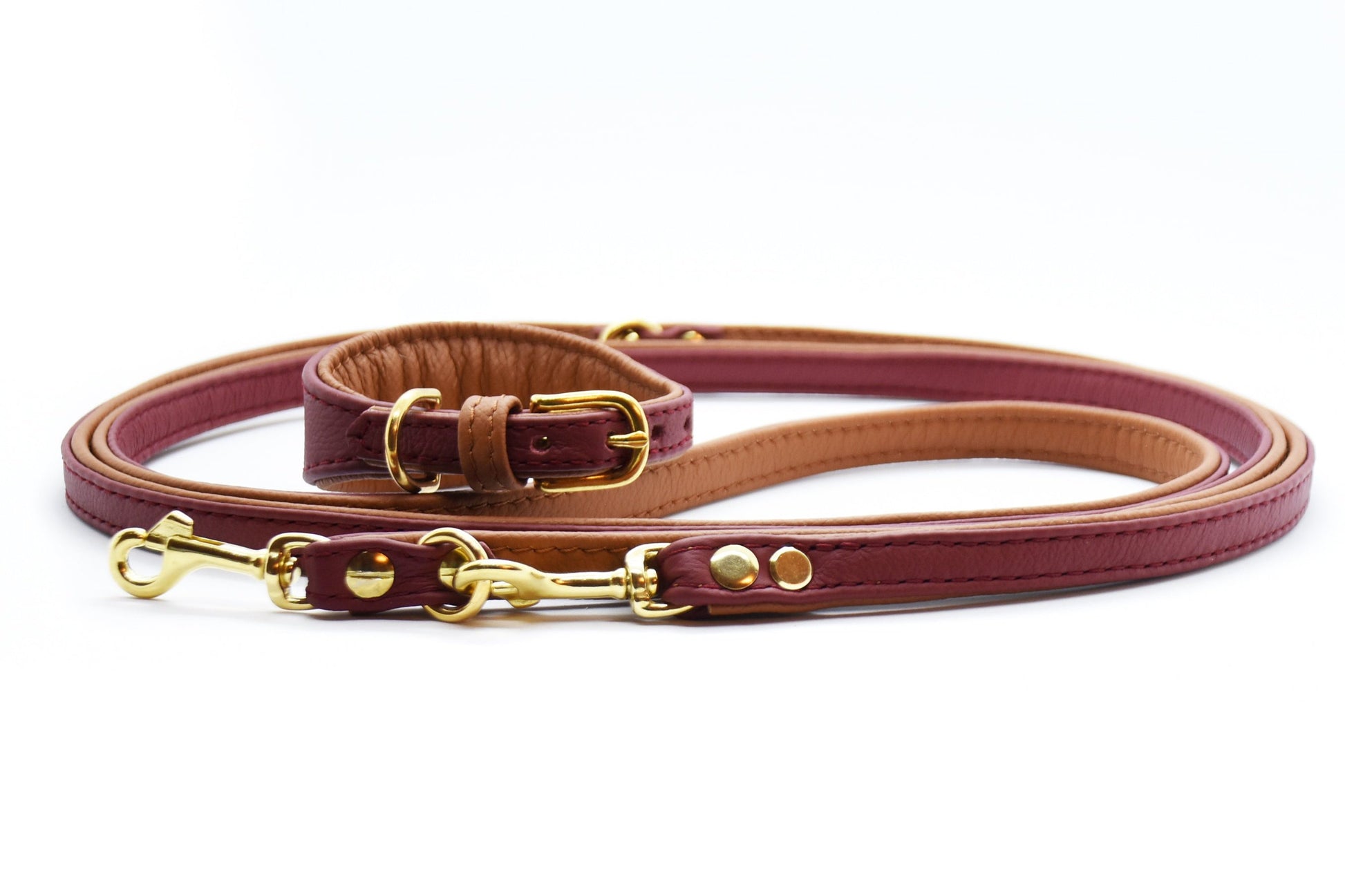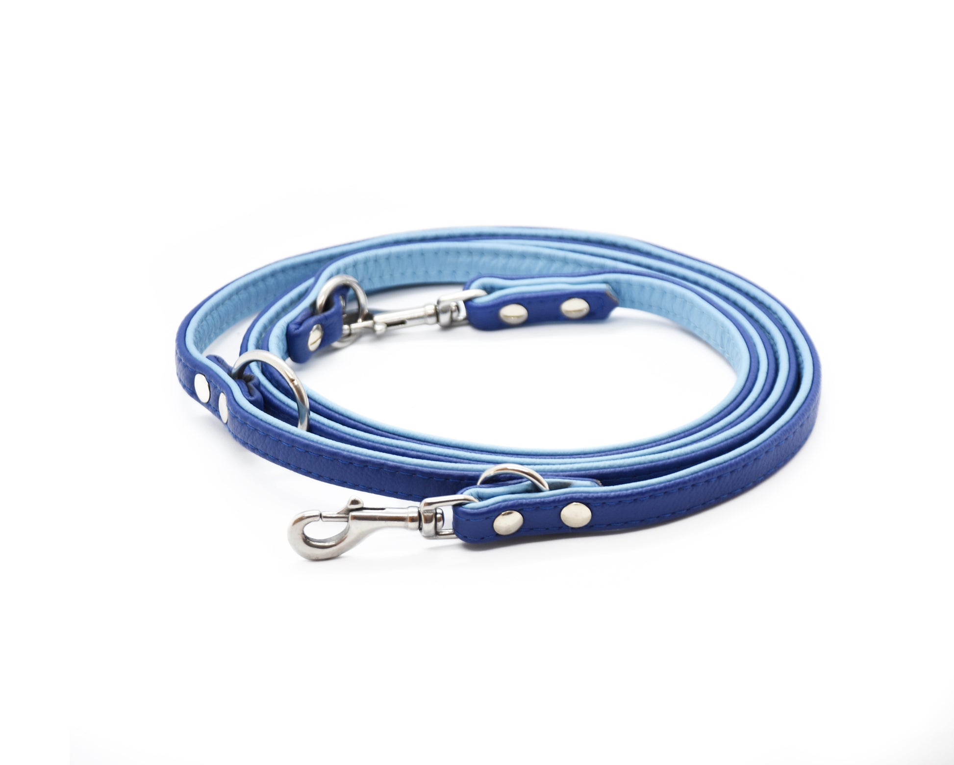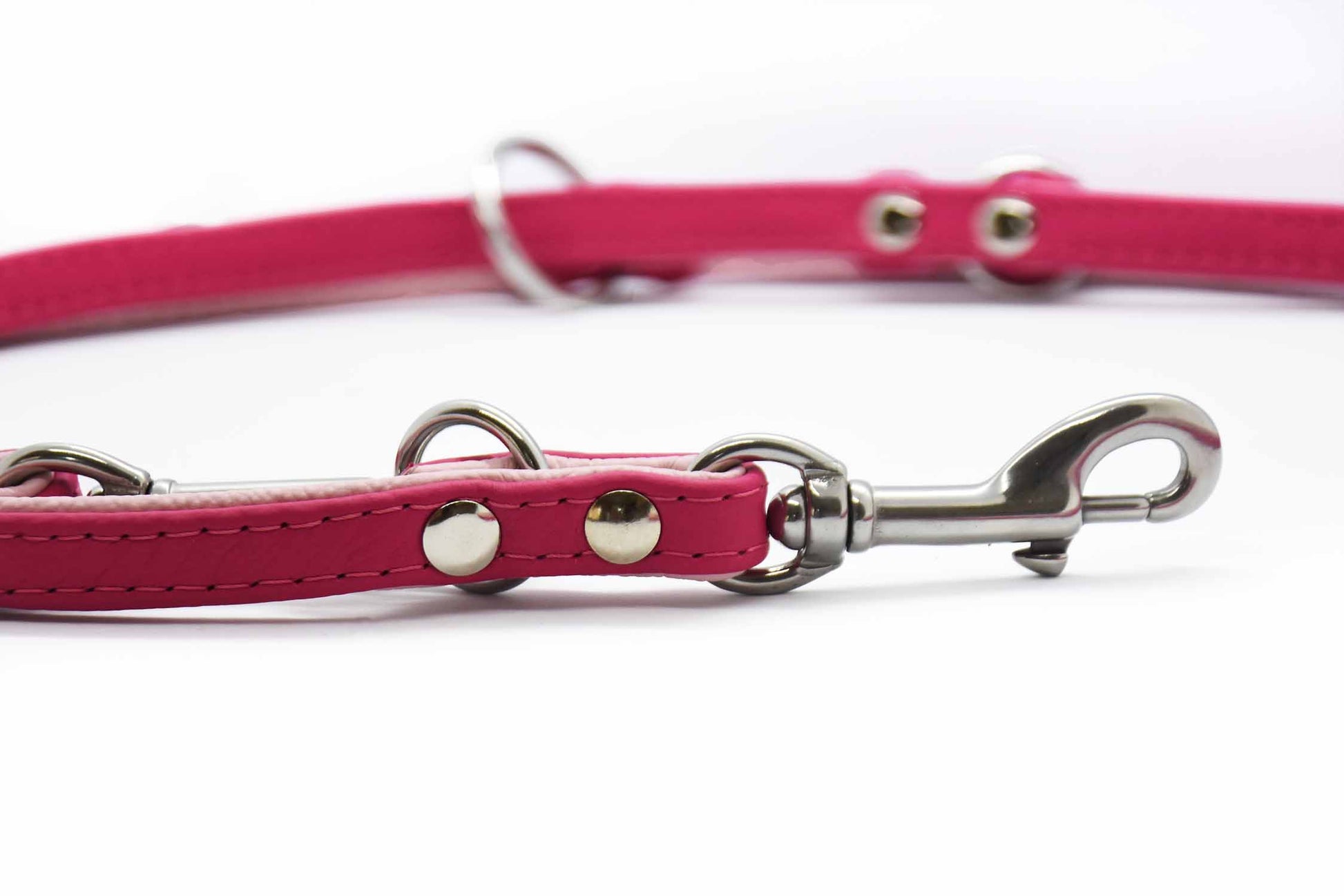 Die Leine wird aus zwei Lederstreifen in deinen Wunschfarben gefertigt und elegant vernäht – für einen besonders edlen Look.