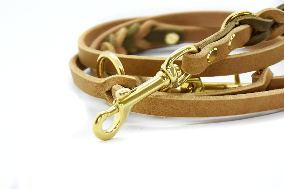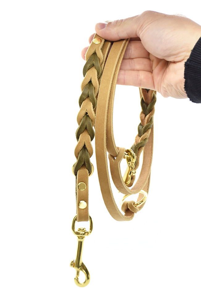 Diese handgeflochtene Hundeleine aus weichem, robustem Fettleder verbindet zeitloses Design mit langlebiger Qualität – ideal für aktive Hundeliebhaber:innen. Wähle aus unseren Farben und stelle dir deine ganz persönliche Lieblingsleine zusammen.