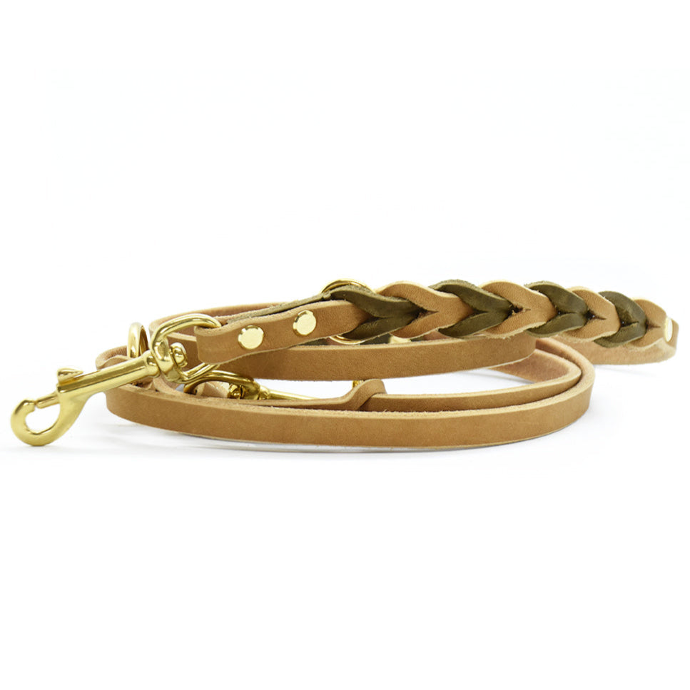 Zweifarbige Fettleder-Leine – handgeflochten & individuell für deinen Hund