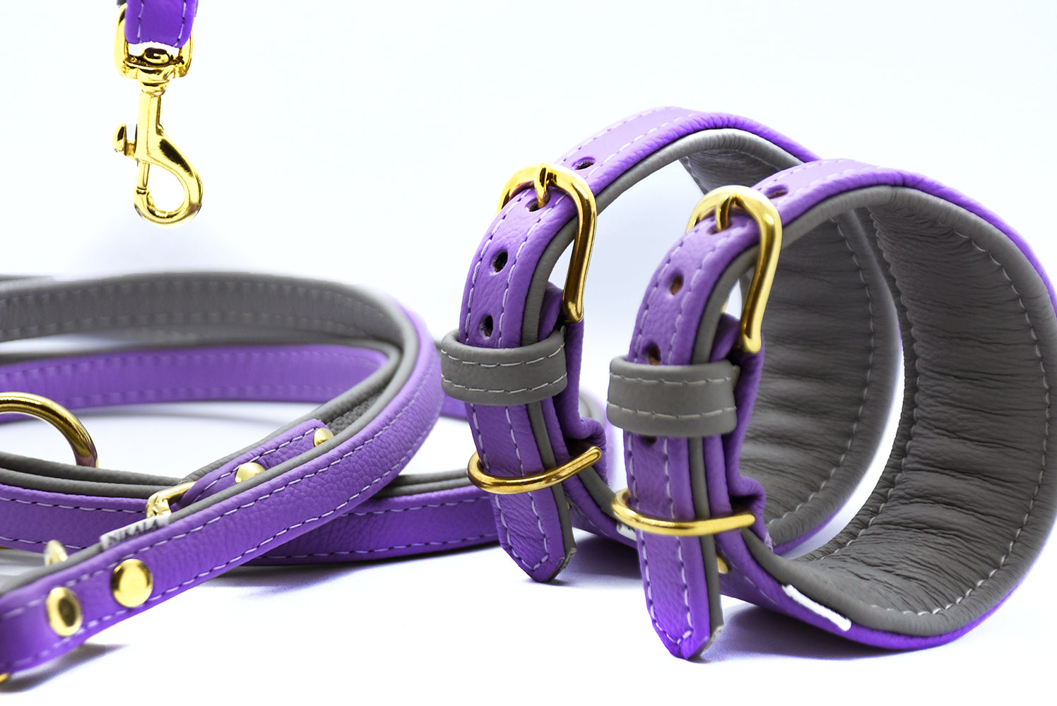 Du wählst deine Lieblingsfarben – denn die Leine wird aus zwei farblich abgestimmten Lederriemen gefertigt und wirkt dadurch besonders edel. Auch das Halsband ist zweifärbig konfigurierbar und wird exakt auf den Halsumfang deines Windhundes angepasst.