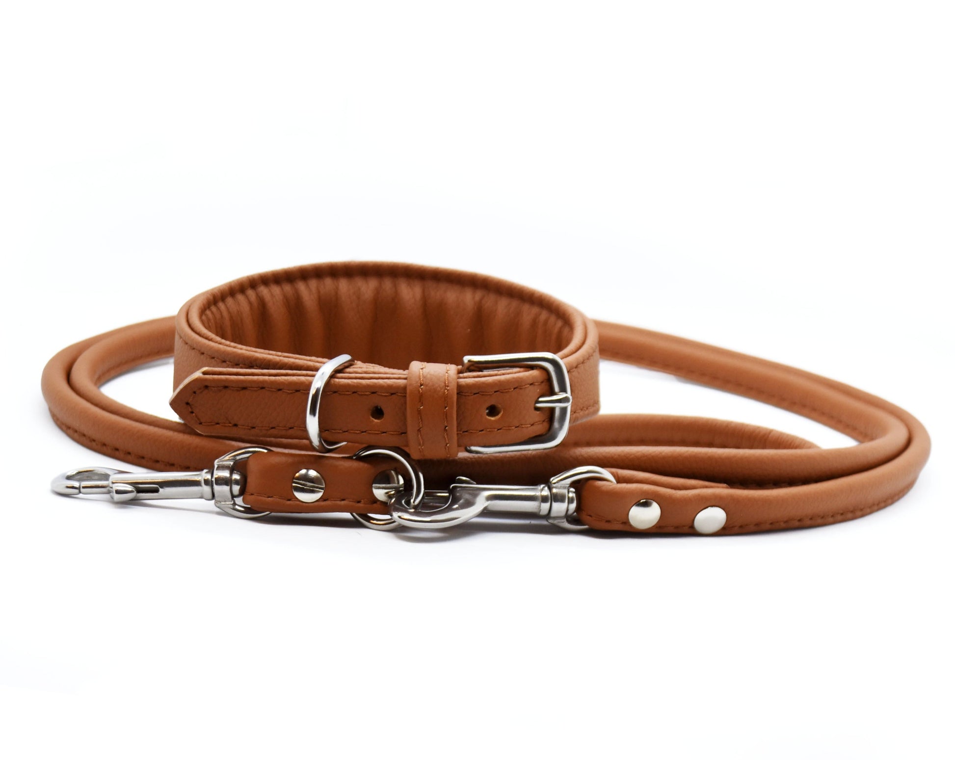Handgefertigte, weiche Hundeleine aus Leder- rundgenäht und individuell hergestellt.