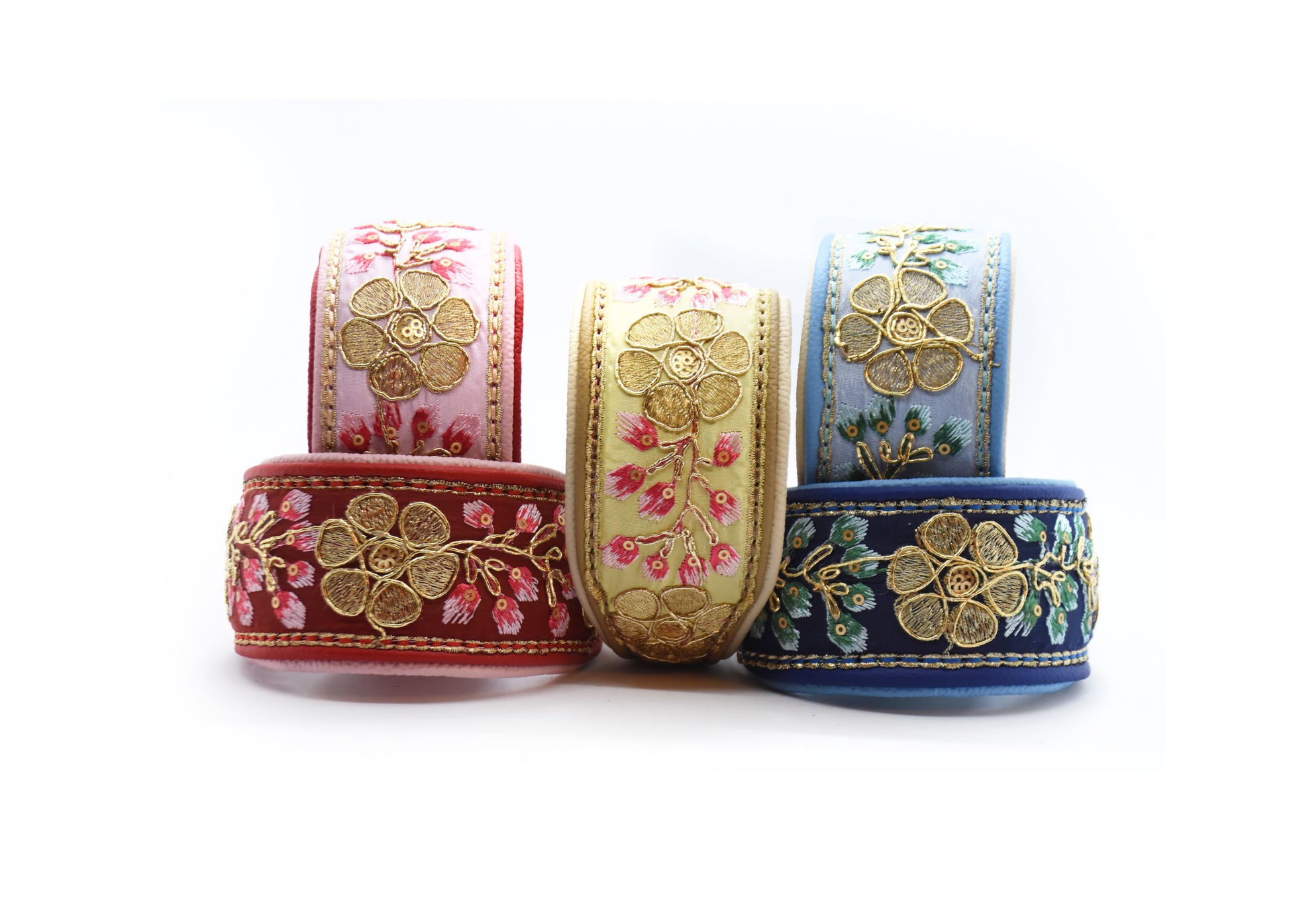- Elegante Stickerei: Die feinen indischen Sari Borten verleihen dem Halsband einen einzigartigen und edlen Look, der deinen Windhund in den Mittelpunkt stellt.