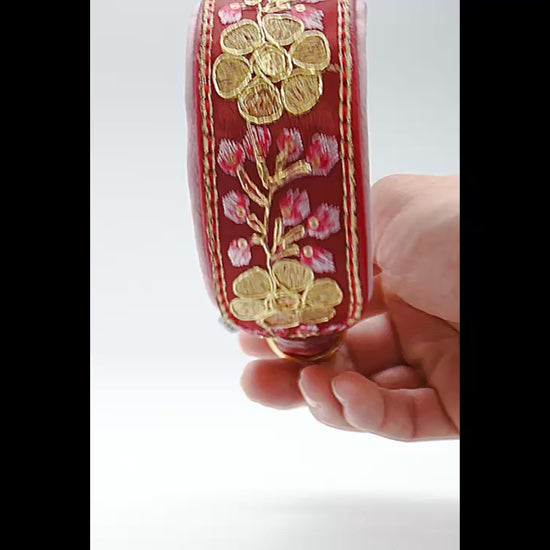 Unsere Frühjahr/Sommer Kollektion 2025! Das Sari red Halsband vereint die Eleganz von indischen Sari Borten mit der klassischen Schönheit eines gepolsterten Lederhalsbands. Feine, handgefertigte Stickereien und die Borte in einem edlen, leuchtenden Rot verleihen deinem Windhund einen luxuriösen und gleichzeitig stilvollen Look. Dieses Halsband ist perfekt für besondere Anlässe und eine ideale Wahl für Windhundbesitzer, die ihren Hund mit einem Hauch von Eleganz ausstatten möchten.