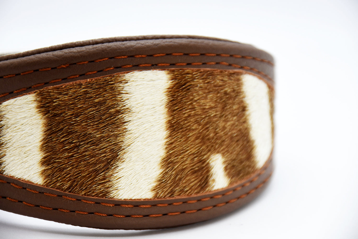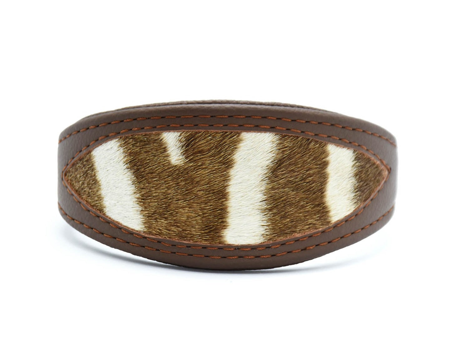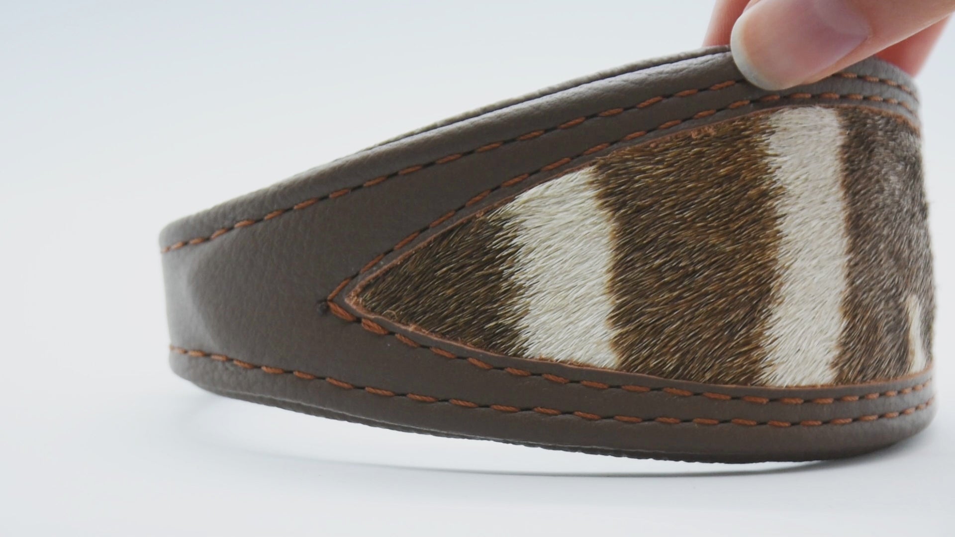 - Zebrafell: Das Zebrafell verleiht dem Halsband einen einzigartigen und exotischen Look, der es zu einem echten Hingucker macht.